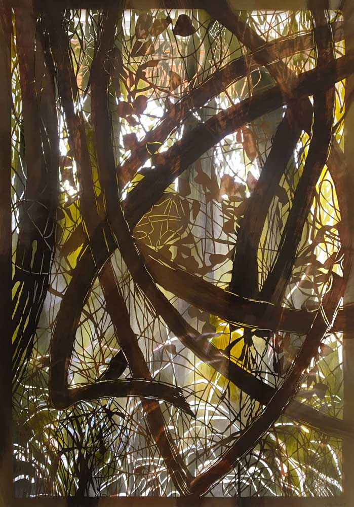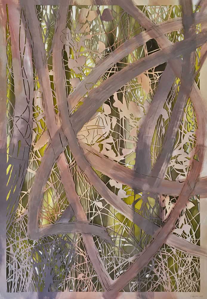 Meine Werke beziehen sich meist auf Themen aus der Natur, in der ich lebe, mich aufhalte, die mich inspiriert: Farbklänge, Strukturen, Kontraste, Lichteinfälle. Einheimische Pflanzen sind wichtig bei meinen Arbeiten. Sie sind mir auch wichtig, weil sie immer mehr zurückgedrängt werden. Zur Zeit sind es Waldränder, die mich interessieren. Eine andere Vegetation wächst hier, auch Blumen, da es lichtdurchfluteter ist als im Waldesinnern.