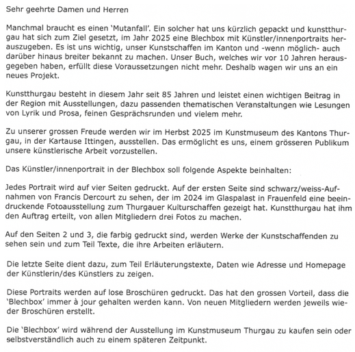 Durch ihre finanzielle Unterstützung von kunstthurgau ist es uns möglich, immer wieder vielfältige Ausstellungen und Projekte anzugehen.